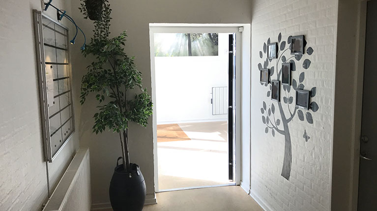 Bøgedal er opdelt i to levegrupper med otte lejligheder i hver, og hver levegruppe har eget køkkenalrum og fælles opholdsstue.